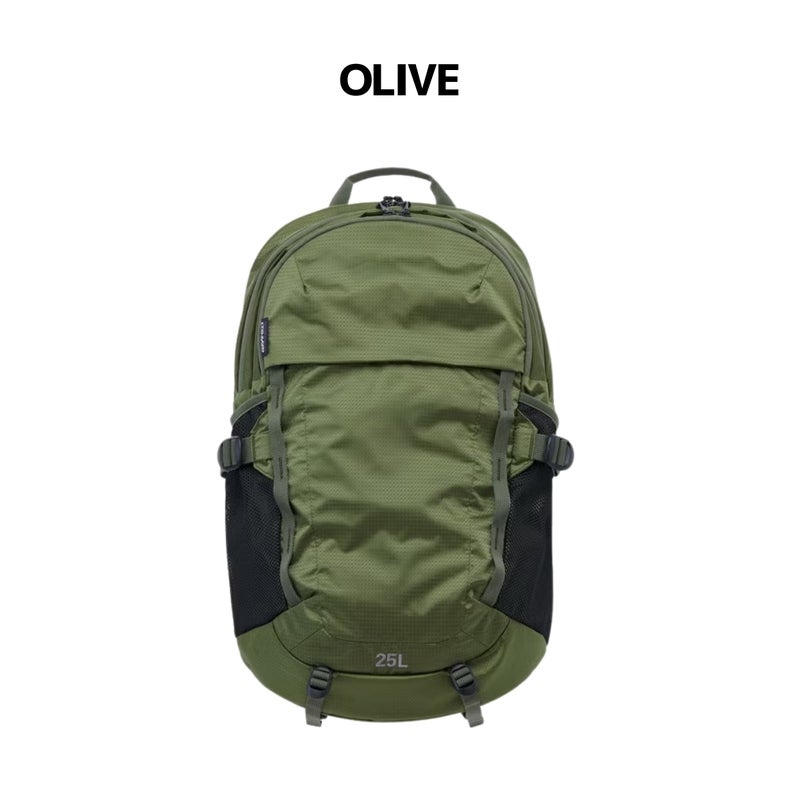 両サイドにメッシュポケット、約25Lのメインルームの内側にはラップトップ用の仕切りがあります。