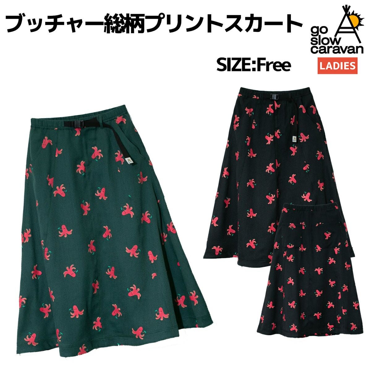 【25%OFF】カジュアル スカート ゴースローキャラバン go slow caravan ブッチャー総柄プリントスカート レディース スカート カジュアル セットアップ可能 柄 春 夏 340242