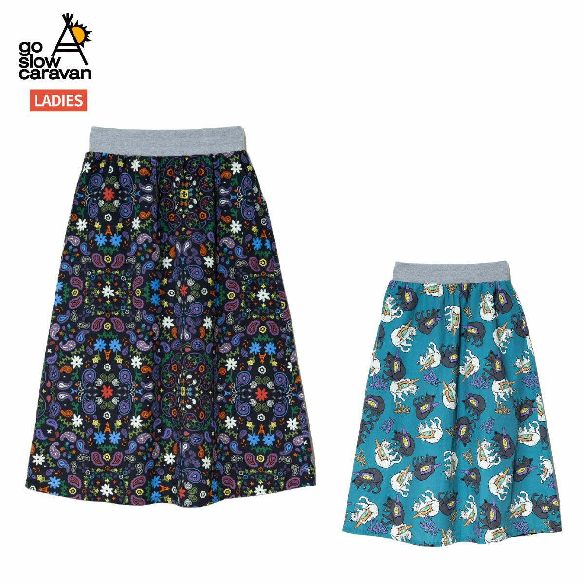 【43%OFF】 ゴースローキャラバン ペイズリー/猫と晩酌 ウエストリブフレアスカート レディース go slow caravan Paisley/Cat and Drink Waist Rib Flare Skirt アウトレット セール