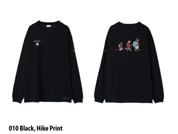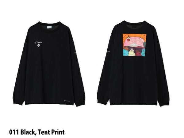 フロントはJonas氏による手書き風のロゴデザイン、バックスタイルにはコロンビア発祥の地である、オレゴン州の最高峰であるマウントフットで、ファミリーや仲間でキャンプやハイキングで楽しむ様子を、Jonas氏オリジナルのポップなキャラクターやグラフィックで表現しました。