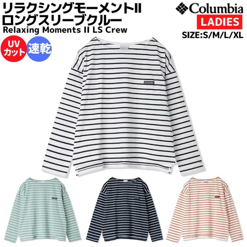6. コロンビア Columbia リラクシングモーメントII ロングスリーブクルー Relaxing Moments II LS Crew レディース 春 夏 ボーダー柄 Tシャツ 長袖 ボートネック スリット 速乾 UVカット アウトドア タウンユース PL9815 125 345 464 888 アウトレット セール