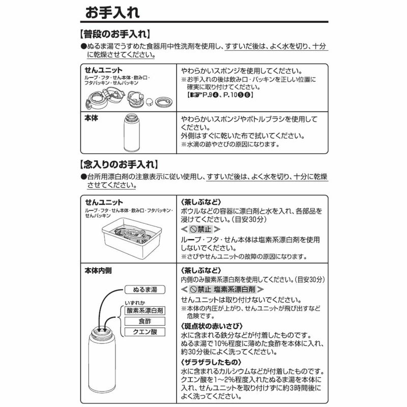 ※保冷効力とは、室温20℃±2℃において製品に4℃以下の水をせんユニット下端まで満たし、水温が4℃±1℃のときからせんユニットを付けて縦置きにした状態で6時間放置した場合におけるその水の温度です。