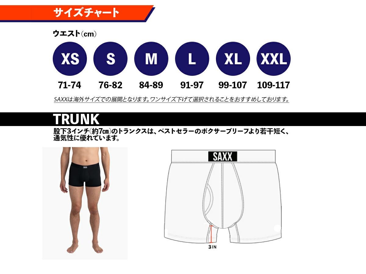 他の画像を見る ボクサーパンツ VIBE SUPER SOFT TRUNK バイブ スーパーソフト トランク メンズ カジュアル インナー 下着 股擦れ 対策 股ずれ 勝負下着 吸湿発散 吸汗速乾 防臭 股間 蒸れない プレゼント 贈り物 ギフト SXTM35 サックスアンダーウェアー SAXX UNDERWEAR SAXX3点まとめ買い割引対象商品 メーカー希望小売価格 ¥ 4,290 販売価格 ¥ 4,290 税込 在庫を見る お気に入りに登録する