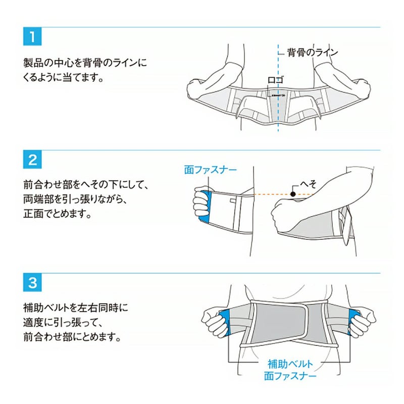 補助ベルトは本体と一体型にすることで、腰部に負担を掛けることなく簡単に装着できます。