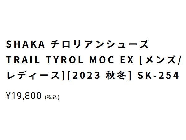 他の画像を見る 【40%OFF】 シャカ SHAKA チロリアンシューズ TRAIL TYROL MOC EX メンズ レディース ユニセックス 秋 冬 カジュアル アウトドア スニーカー モカシン コードロック 軽量 撥水 SK-254 アウトレット セール メーカー希望小売価格 ¥ 19,800 販売価格 ¥ 11,880 税込 在庫切れ 在庫を見る お気に入りに登録する