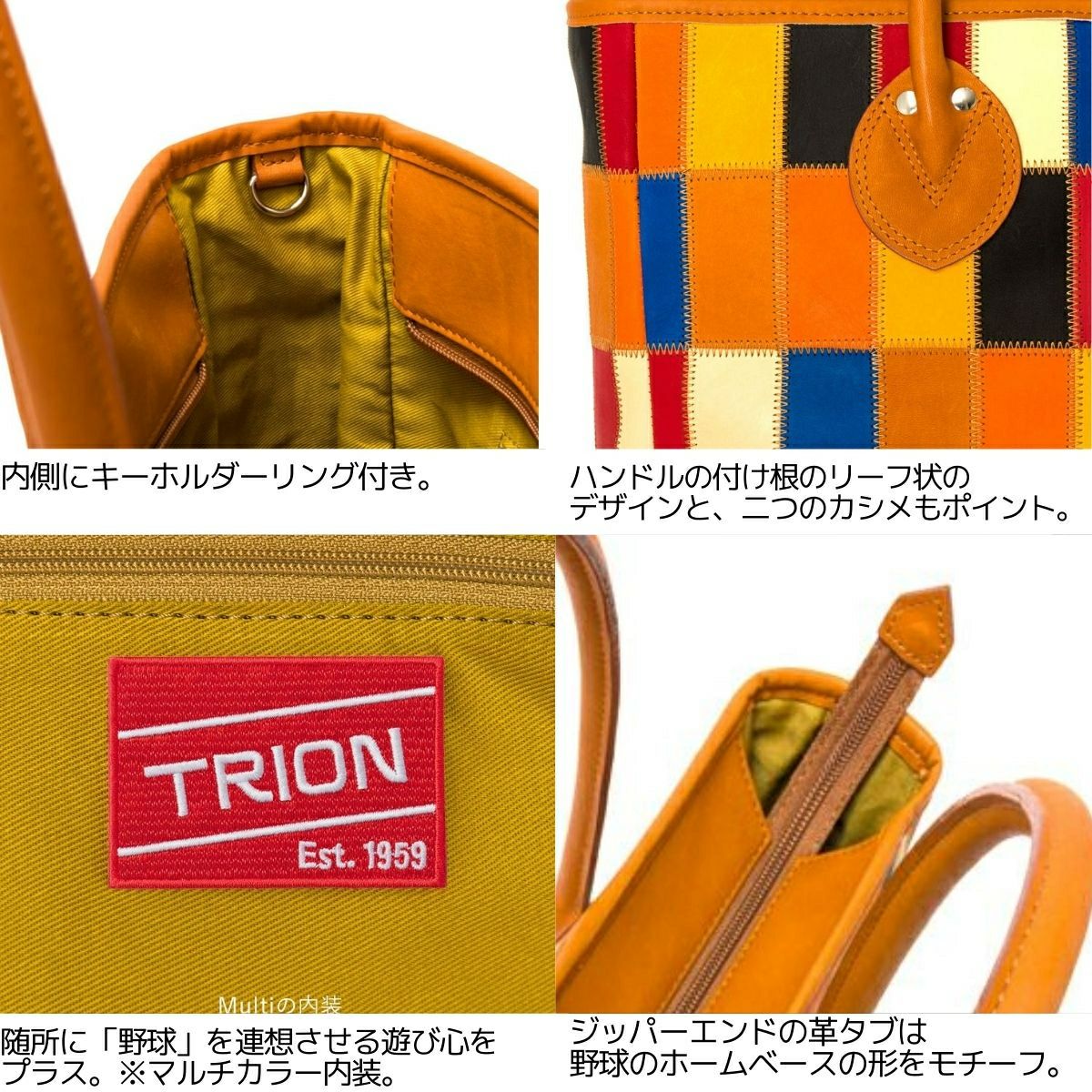 カジュアル バッグ トライオン TRION PANELシリーズ トートバッグ メンズ レディース ユニセックス 横型 A4 マルチカラー ビジネス ビジカジ オフィス バッグ 手掲げバッグ 職場 通勤 通学 PC収納可能 パッチワーク 野球 グラブレザー 革 本革 DPC260M