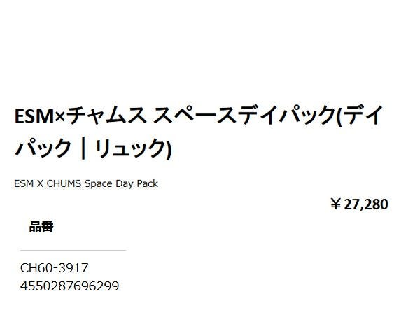 他の画像を見る 【10%OFF】カジュアル バッグ チャムス ESM×チャムス スペースデイパック メンズ レディース ユニセックス Chums ESM x Chums Space Daypack メーカー希望小売価格 ¥ 27,280 販売価格 ¥ 24,552 税込 在庫切れ 在庫を見る お気に入りに登録する