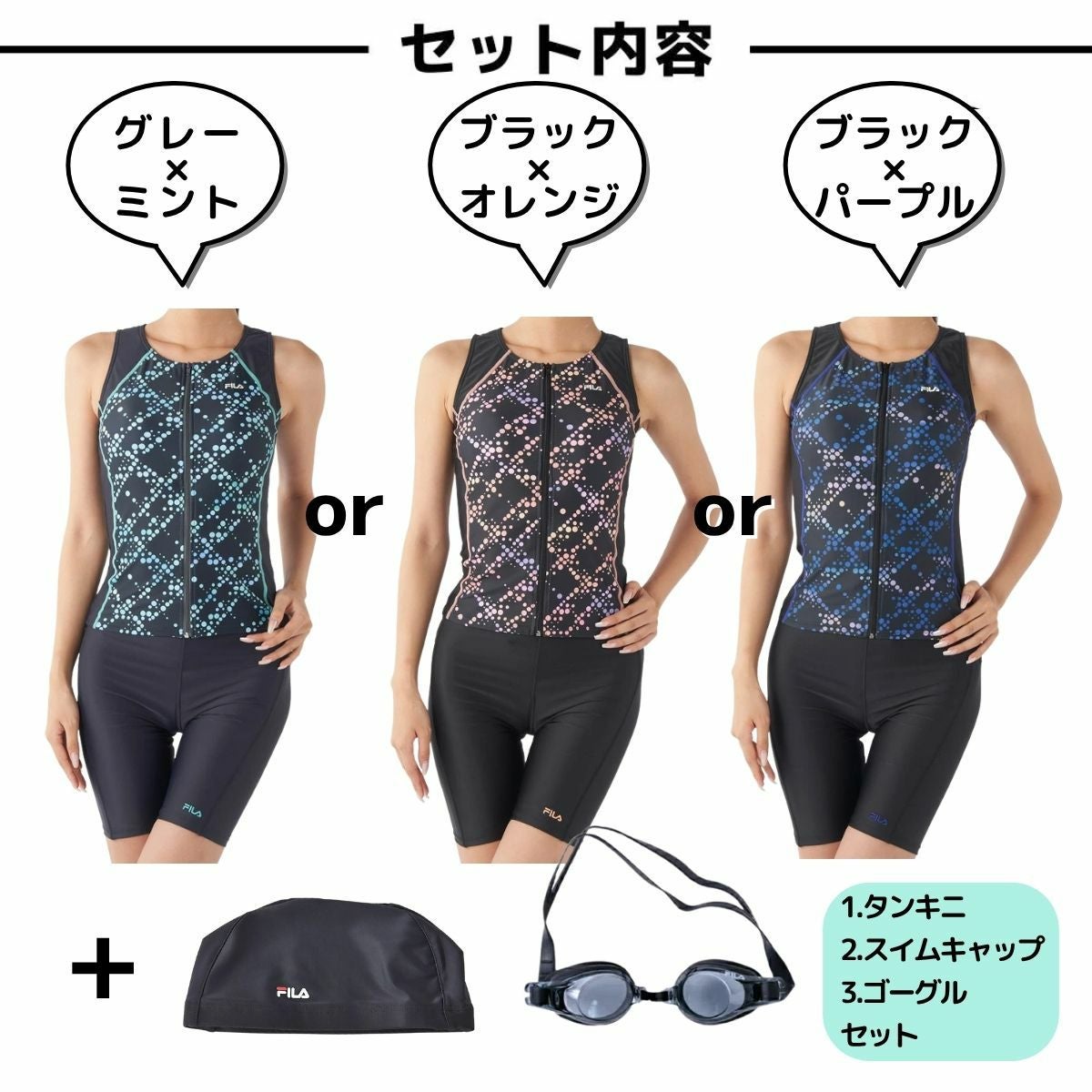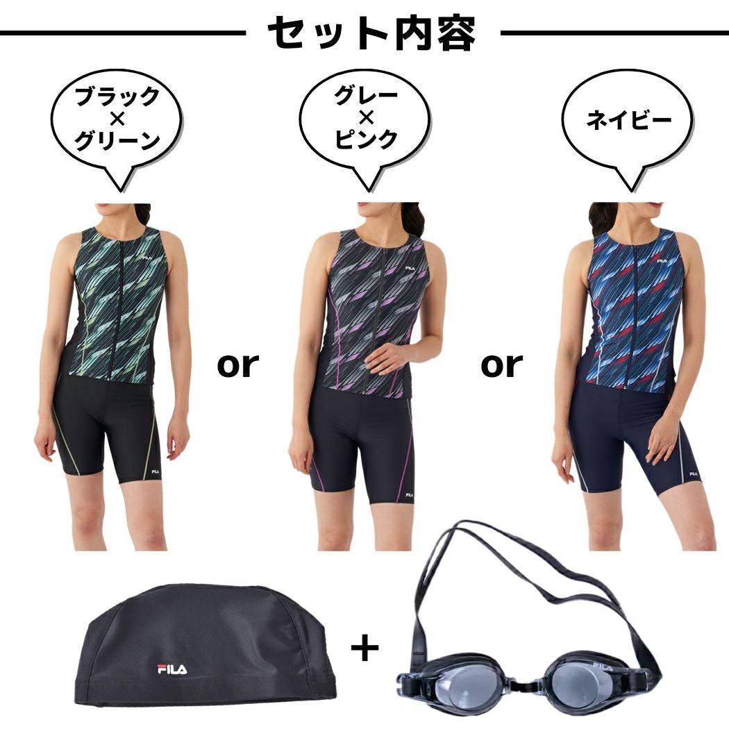 他の画像を見る 【51%OFF】 フィラ FILA フィットネス水着 選べる3点セット 総柄 フルジップセパレート ゴーグル スイムキャップ付き レディース セパレート タンキニ タンクトップ 水泳 スイム フィットネス 水着 ボトムス 水着セット プール 海 344604SET アウトレット セール メーカー希望小売価格 ¥ 11,330 販売価格 ¥ 5,500 税込 在庫切れ 在庫を見る お気に入りに登録する