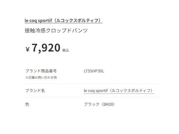 他の画像を見る 【10%OFF】スポーツ フィットネス パンツ ルコック 接触冷感クロップドパンツ レディース le coq sportif Cool touch sensation cropped pants メーカー希望小売価格 ¥ 7,920 販売価格 ¥ 7,128 税込 在庫切れ 在庫を見る お気に入りに登録する