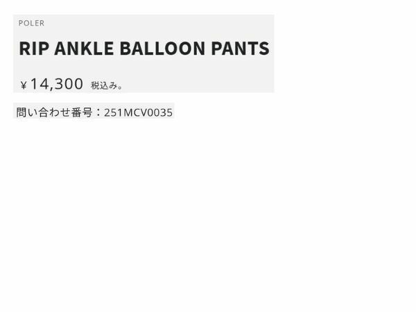 他の画像を見る 【35%OFF】 ポーラー リップアンクルバルーンパンツ メンズ レディース ユニセックス POLeR RIP ANKLE BALLOON PANTS アウトレット セール メーカー希望小売価格 ¥ 14,300 販売価格 ¥ 9,295 税込 在庫切れ 在庫を見る お気に入りに登録する