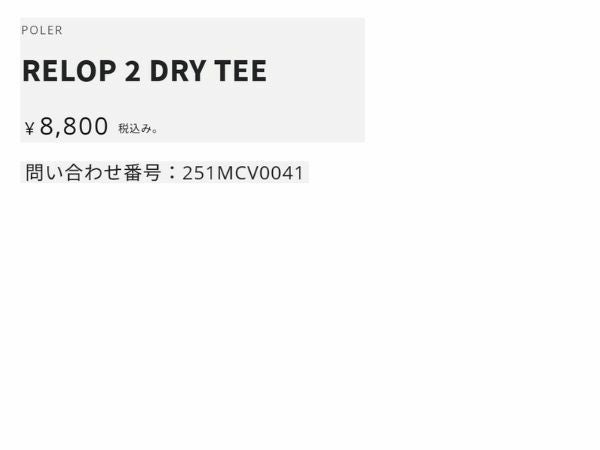 他の画像を見る 【30%OFF】 ポーラー POLeR RELOP 2 DRY TEE メンズ レディース ユニセックス トップス 半袖 Tシャツ カジュアル ドライ 吸湿速乾 251MCV0041 アウトレット セール メーカー希望小売価格 ¥ 8,800 販売価格 ¥ 6,160 税込 在庫切れ 在庫を見る お気に入りに登録する