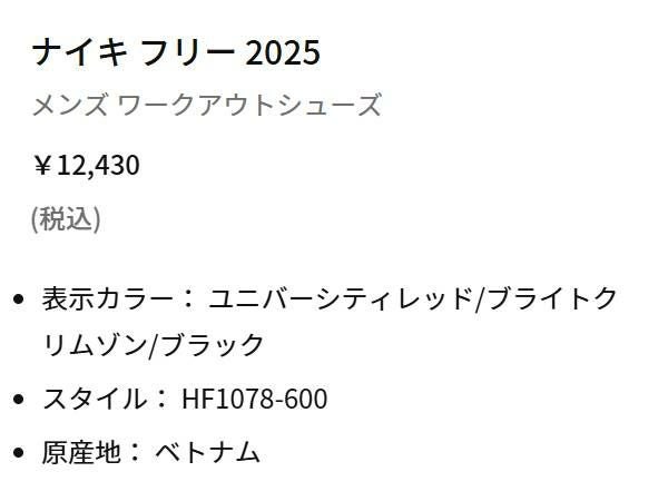 他の画像を見る 【10%OFF】スポーツ ランニングシューズ ランシュー ナイキ NIKE FREE 2025 フリー 2025 メンズ レッド 赤 スポーツ ランニングシューズ ランシュー HF1078600 メーカー希望小売価格 ¥ 12,430 販売価格 ¥ 11,187 税込 在庫切れ 在庫を見る お気に入りに登録する