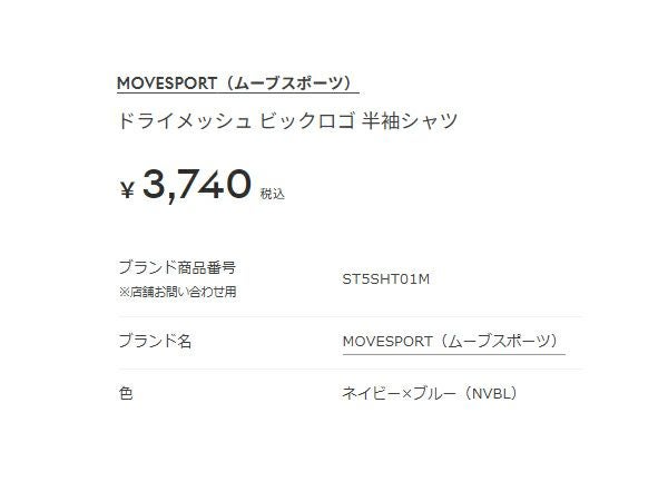 他の画像を見る 【20%OFF】 ムーブスポーツ MOVESPORT ドライメッシュ ビックロゴ 半袖シャツ メンズ 春 夏 ネイビー 紺 スポーツ トレーニング 半袖 Tシャツ ST5SHT01M-NVBL メーカー希望小売価格 ¥ 3,740 販売価格 ¥ 2,990 税込 在庫切れ 在庫を見る お気に入りに登録する