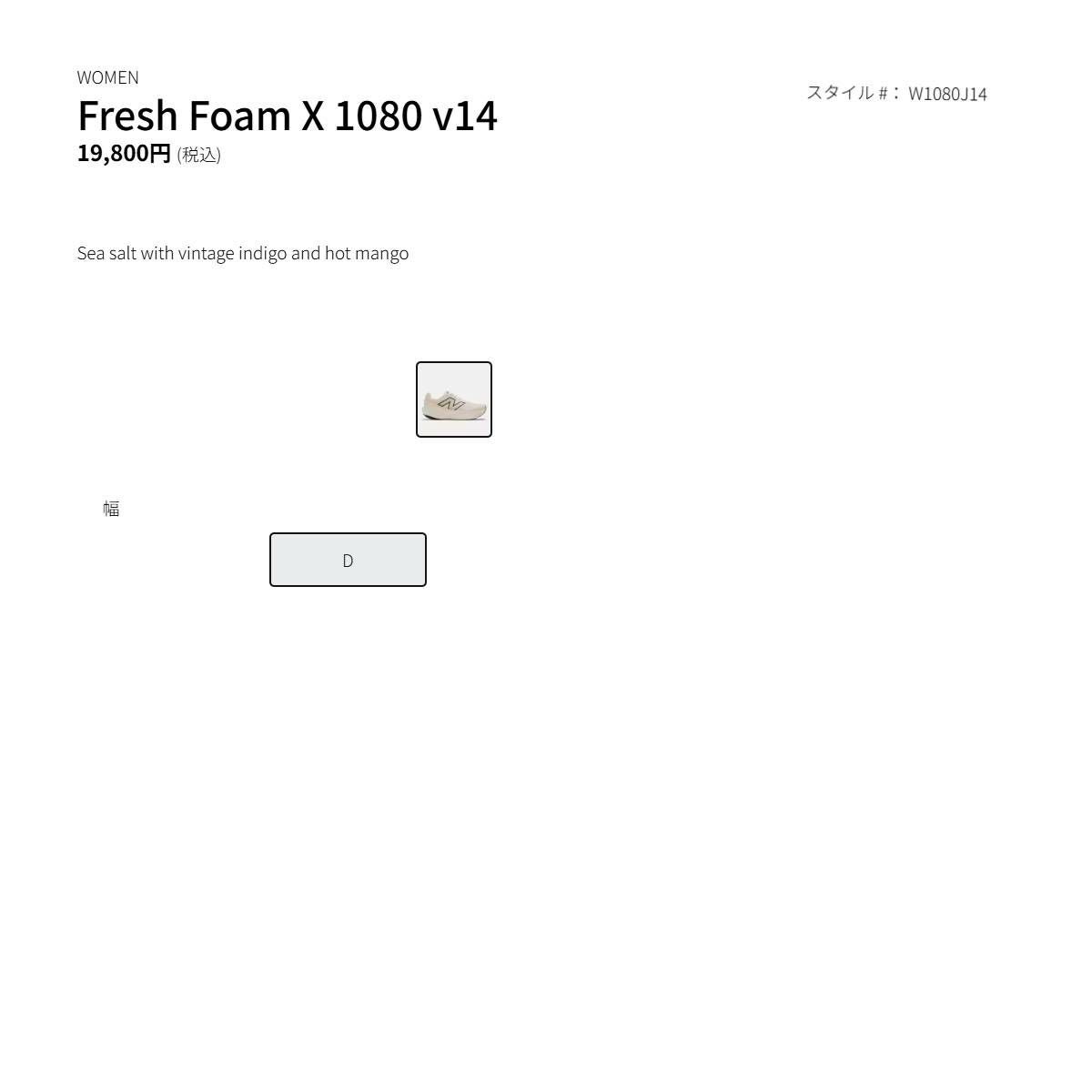 他の画像を見る 【20%OFF】 ニューバランス NEW BALANCE Fresh Foam X 1080 v14 フレッシュフォーム レディース ホワイト ベージュ スポーツ ランニングシューズ ランシュー W1080J14D メーカー希望小売価格 ¥ 19,800 販売価格 ¥ 15,840 税込 在庫切れ 在庫を見る お気に入りに登録する