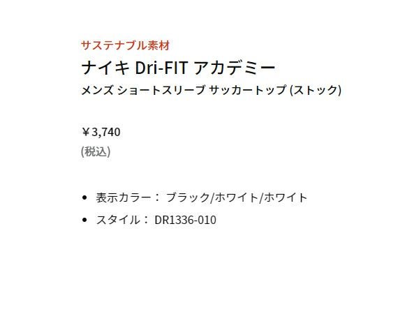他の画像を見る 【47%OFF】 ナイキ NIKE Dri-FIT アカデミー ショートスリーブ サッカートップ メンズ 春 夏 ブラック 黒 スポーツ トレーニング 半袖 Tシャツ DR1336-010 アウトレット セール メーカー希望小売価格 ¥ 3,740 販売価格 ¥ 1,990 税込 在庫切れ 在庫を見る お気に入りに登録する