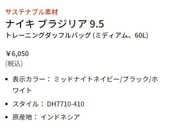 他の画像を見る 【34%OFF】 ナイキ NIKE ブラジリア 9.5 トレーブラジリア 9.5 トレーニングダッフルバッグ M 60L メンズ レディース ユニセックス アウトレット セール メーカー希望小売価格 ¥ 6,050 販売価格 ¥ 3,980 税込 在庫切れ 在庫を見る お気に入りに登録する