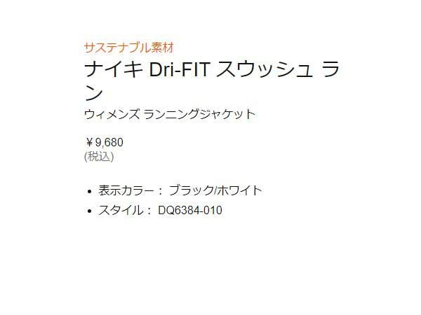 他の画像を見る 【59%OFF】 ナイキ NIKE Dri-FIT スウッシュ ラン ジャケット レディース 秋 冬 ブラック 黒 スポーツ フィットネス フルジップ ジャケット DQ6384-010 アウトレット セール メーカー希望小売価格 ¥ 9,680 販売価格 ¥ 3,990 税込 在庫切れ 在庫を見る お気に入りに登録する