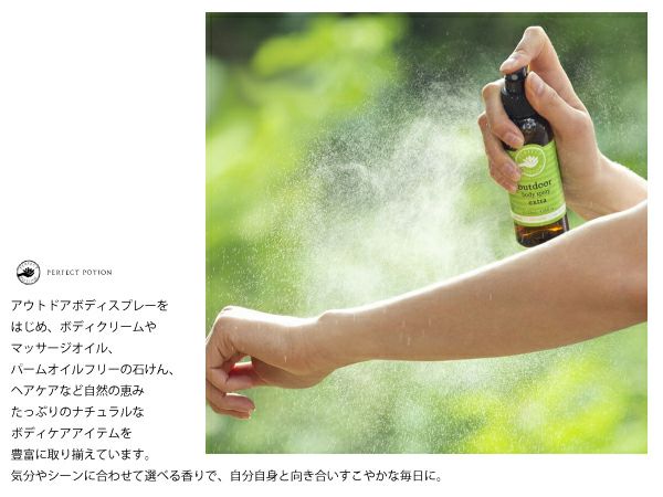 他の画像を見る 【30%OFF】 パーフェクトポーション PERFECT POTION アウトドアボディスプレー アロマブレンド 50ml カジュアル 小物 ボディスプレー 110968BZE 110970BZH アウトレット セール メーカー希望小売価格 ¥ 825 販売価格 ¥ 578 税込 在庫切れ 在庫を見る お気に入りに登録する