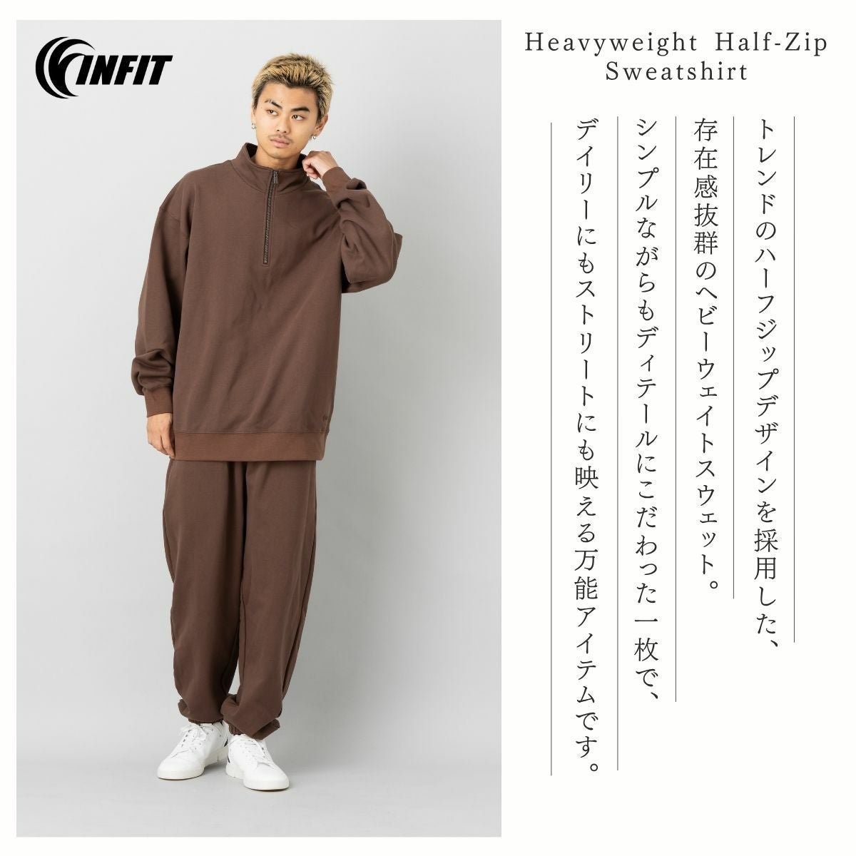 他の画像を見る 【25%OFF】カジュアル ウェア インフィット ヘビーウェイトオーバーハーフジップスウェット メンズ INFIT メーカー希望小売価格 ¥ 6,490 販売価格 ¥ 4,868 税込 在庫を見る お気に入りに登録する