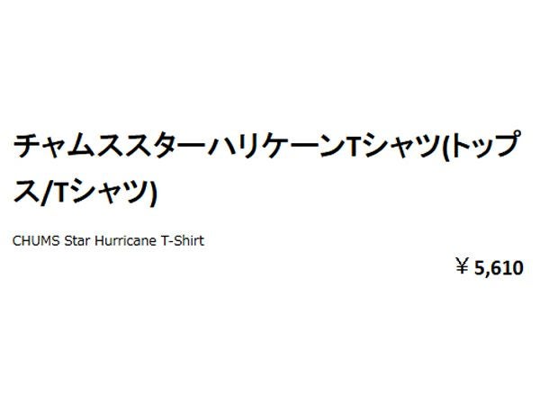他の画像を見る 【32%OFF】 チャムス CHUMS チャムススターハリケーンTシャツ CHUMS Star Hurricane T-Shirt メンズ レディース ユニセックス 綿100% カジュアル アウトドア キャンプ 半袖 イラスト プリント CH01-2529 アウトレット セール メーカー希望小売価格 ¥ 5,610 販売価格 ¥ 3,815 税込 在庫を見る お気に入りに登録する
