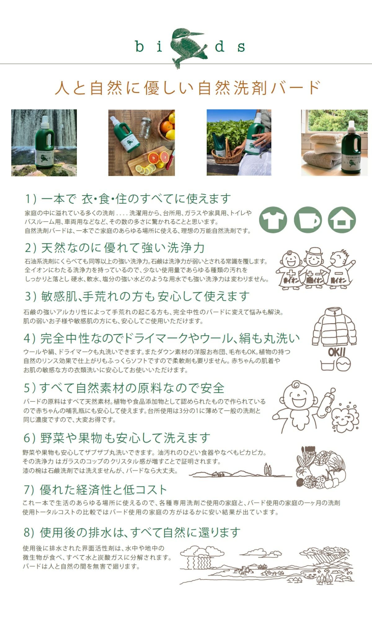 他の画像を見る 1Lボトルと750ml詰め替え用のセット売り バード birds 自然洗剤 ボトル&詰め替えセット 洗剤 日本製 洗濯 アウトドア キャンプ 敏感肌 洗濯用洗剤 台所用洗剤 キッチン用洗剤 住宅用洗剤 サステナブル 衣食住 洗浄力抜群 万能洗剤 環境 野菜も洗える 低コスト 自然に優しい お子様 赤ちゃん メーカー希望小売価格 ¥ 6,050 販売価格 ¥ 6,050 税込 在庫を見る お気に入りに登録する