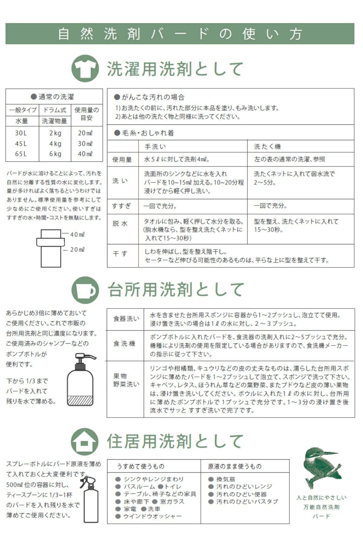 他の画像を見る バード birds 自然洗剤 詰替え用 750ml 洗剤 日本製 洗濯 アウトドア キャンプ 敏感肌 洗濯用洗剤 台所用洗剤 キッチン用洗剤 住宅用洗剤 サステナブル 衣食住 洗浄力抜群 万能洗剤 環境 野菜も洗える 低コスト 自然に優しい お子様 赤ちゃん メーカー希望小売価格 ¥ 2,475 販売価格 ¥ 2,475 税込 在庫を見る お気に入りに登録する