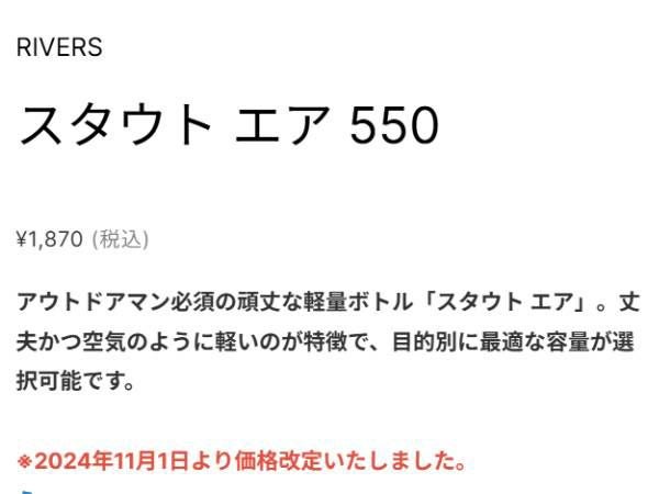 他の画像を見る 登山 アウトドア トレイル 小物 リバーズ RIVERS STOUT AIR 550E スタウト エア 550E ECOZEN エコゼン 550ml 登山 アウトドア トレイル 小物 水筒 ウォーターボトル SA550E BT010 メーカー希望小売価格 ¥ 1,870 販売価格 ¥ 1,870 税込 在庫を見る お気に入りに登録する