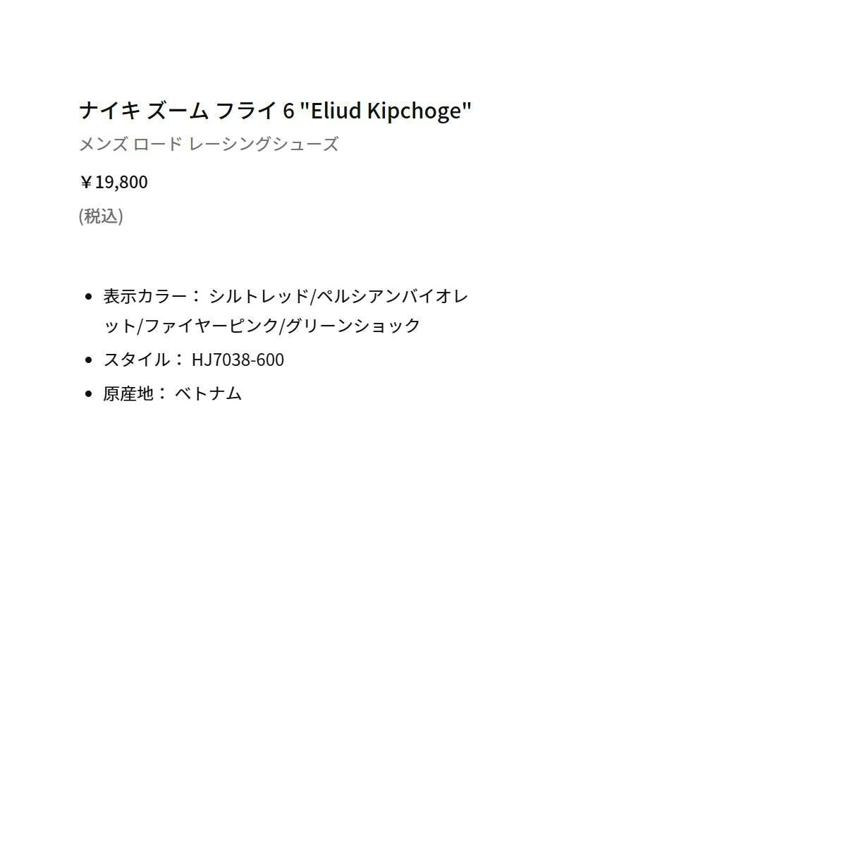 他の画像を見る 【10%OFF】スポーツ ランニングシューズ ランシュー ナイキ ズーム フライ 6 エリウド キプチョゲ メンズ NIKE ZOOM FLY 6 Eliud Kipchoge メーカー希望小売価格 ¥ 19,800 販売価格 ¥ 17,820 税込 在庫切れ 在庫を見る お気に入りに登録する