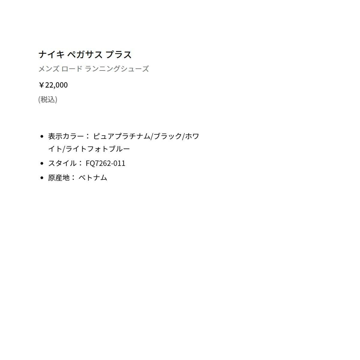 他の画像を見る 【10%OFF】スポーツ ランニングシューズ ランシュー ナイキ ペガサス プラス メンズ NIKE PEGASUS PLUS メーカー希望小売価格 ¥ 22,000 販売価格 ¥ 19,800 税込 在庫切れ 在庫を見る お気に入りに登録する