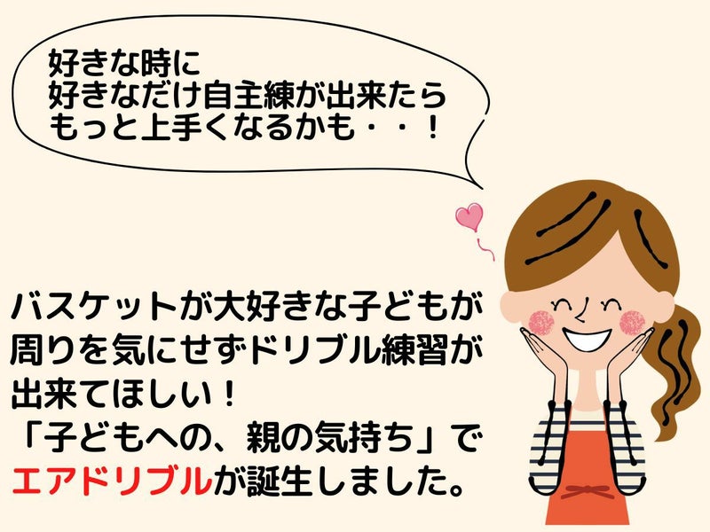 エアドリブルは、静かにドリブルを練習するために、開発されたものです。