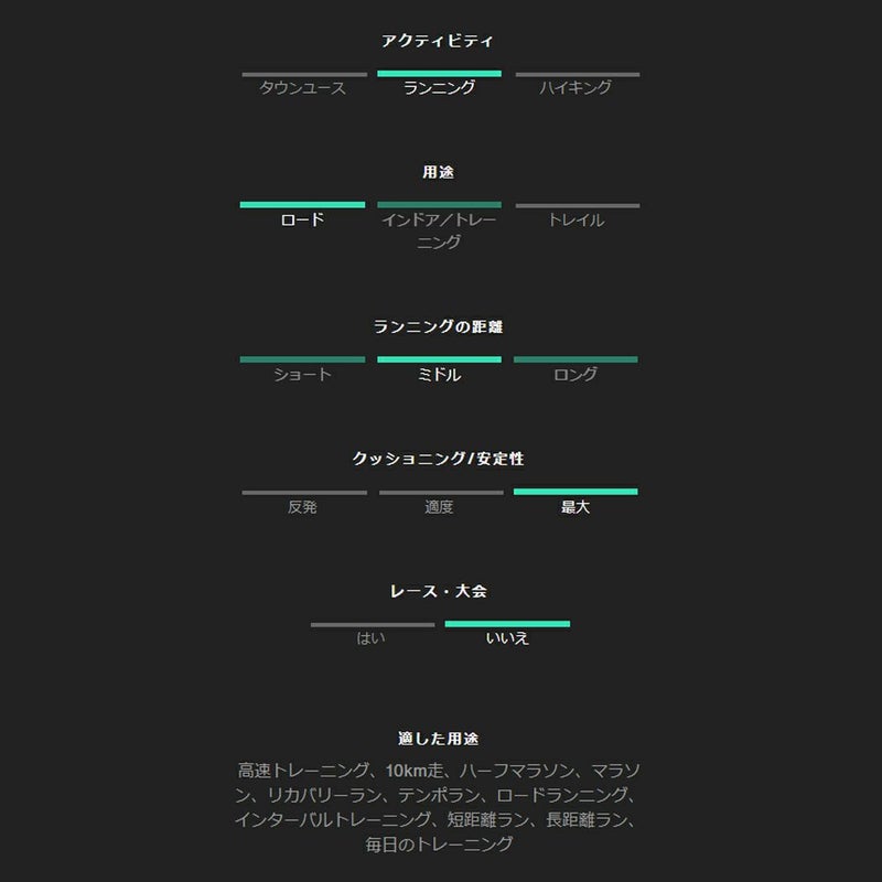 適した用途:高速トレーニング、10km走、ハーフマラソン、