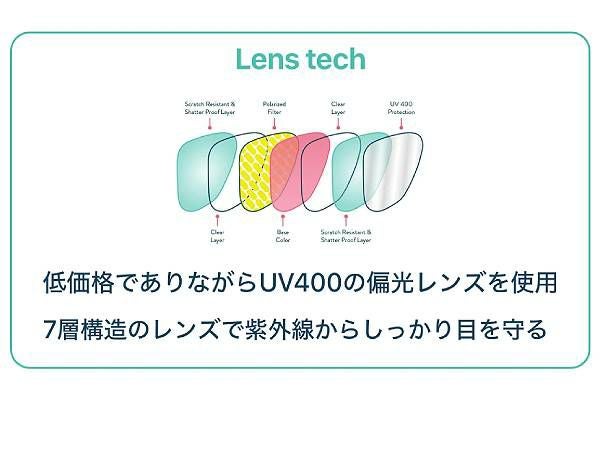 低価格でありながらUV400で偏光レンズを使用6層構造のレンズで紫外線からしっかり目を守る