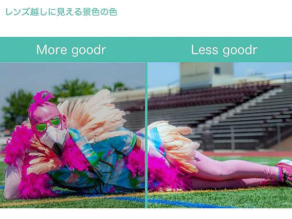 着用時にgoodrごしに見える景色の色味:濃いグレー