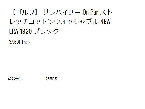 ニューエラ NEW ERA ゴルフ サンバイザー On Par ストレッチコットンウォッシャブル NEW ERA 1920 一般 ブラック 黒 ゴルフ キャップ サンバイザー 12855077