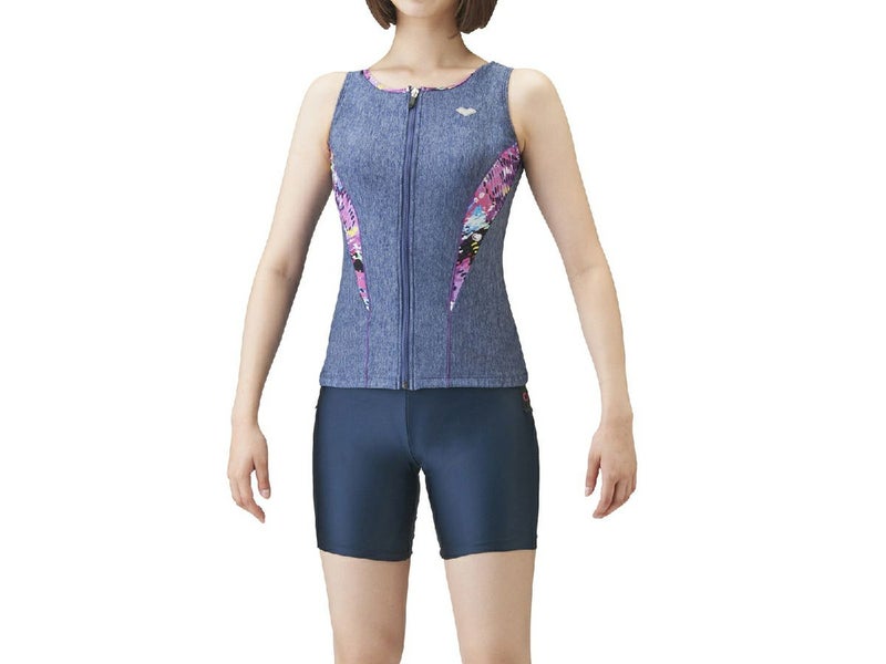 水泳 スイム フィットネス 水着 アリーナ arena すらっとセパ 大きめカラースナップ付きセパレーツ(差し込みフィットパッド) レディース オールシーズン ネイビー 紺色 水泳 スイム フィットネス 水着 LAR1243W-MNPL