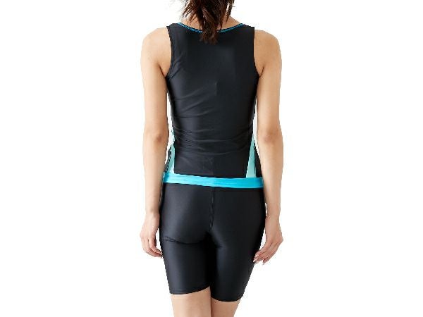 2way方向によく伸びる生地を使用。ファスナー付で着脱が楽なセパレーツ水着。