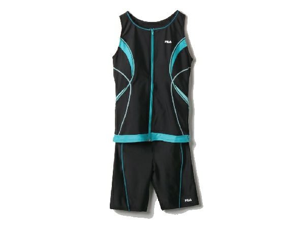 【27%OFF】水泳 スイム フィットネス 水着 フィラ FILA 配色フルジップセパレート レディース オールシーズン ブラック 黒 水泳 スイム フィットネス 水着 311202-BBL