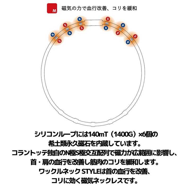 スッキリと軽い着け心地で、シーンを選ばず、ファッションアイテムとして身につけながらボディケアができる磁気ネックレスです。