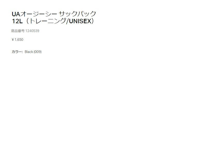 スポーツ バッグ アンダーアーマー UNDER ARMOUR オージーシー サックパック 12L ブラック スポーツ バッグ ナップザック 1240539-009