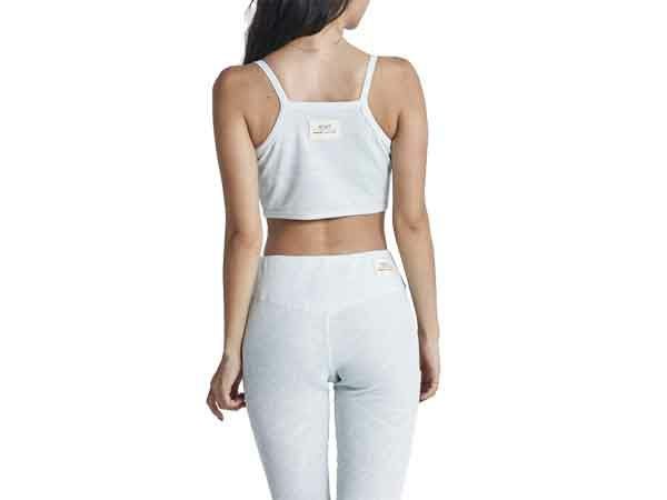 オリジナルのリーフ柄を線画であしらったワッフル素材のブラトップ。