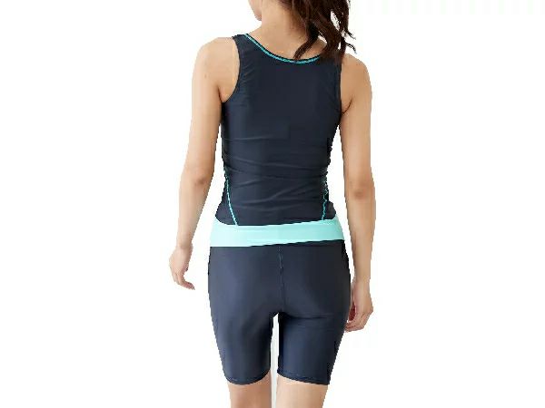 かぶりタイプのタンキニ水着(トップス、ファスナーなし)。
