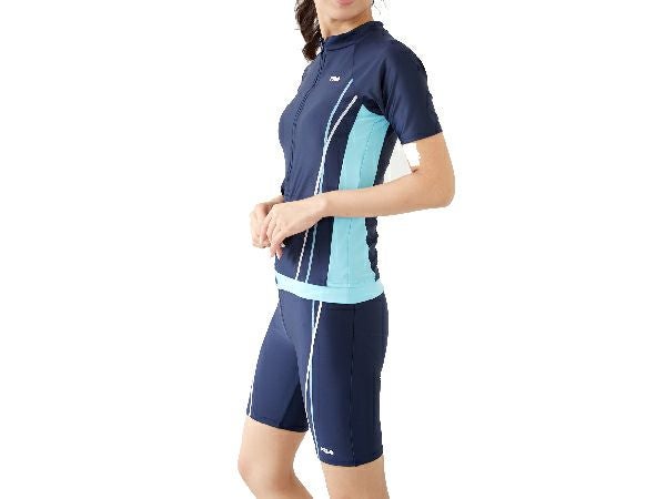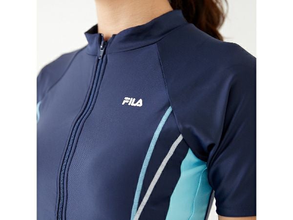 【24%OFF】水泳 スイム フィットネス 水着 フィラ FILA 半袖フルジップタンキニ水着 レディース ネイビー 紺 水泳 スイム フィットネス 水着 311203-NV