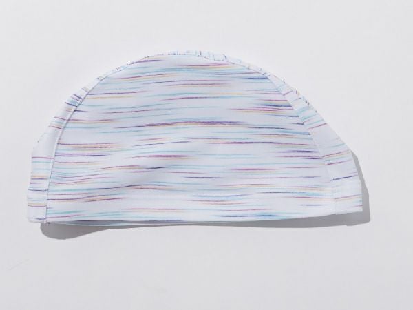 スイムキャップ。鮮やかな色使いのボーダー柄。
