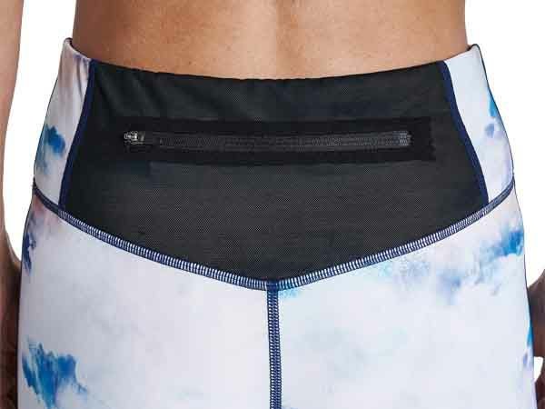 メッシュのファスナーポケットをつけたレギンス。