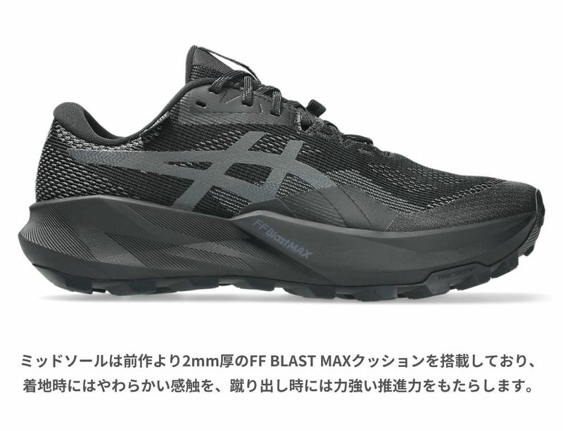 ミッドソールは前作より2mm厚のFF BLAST MAXクッションを搭載しており、着地時にはやわらかい感触を、蹴り出し時には力強い推進力をもたらします。