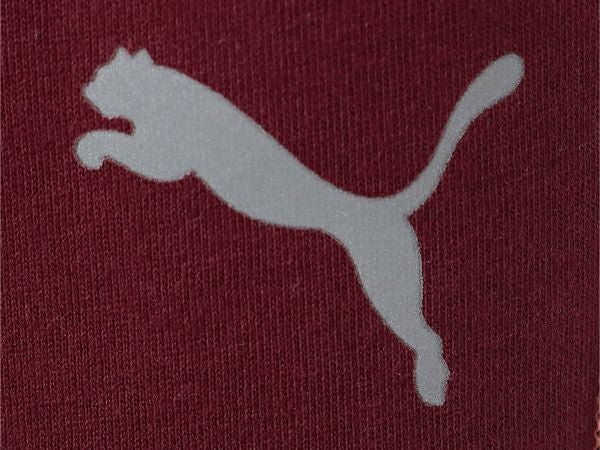 左膝にシルバーの反射素材のプーマキャットロゴを熱転写プリント。
