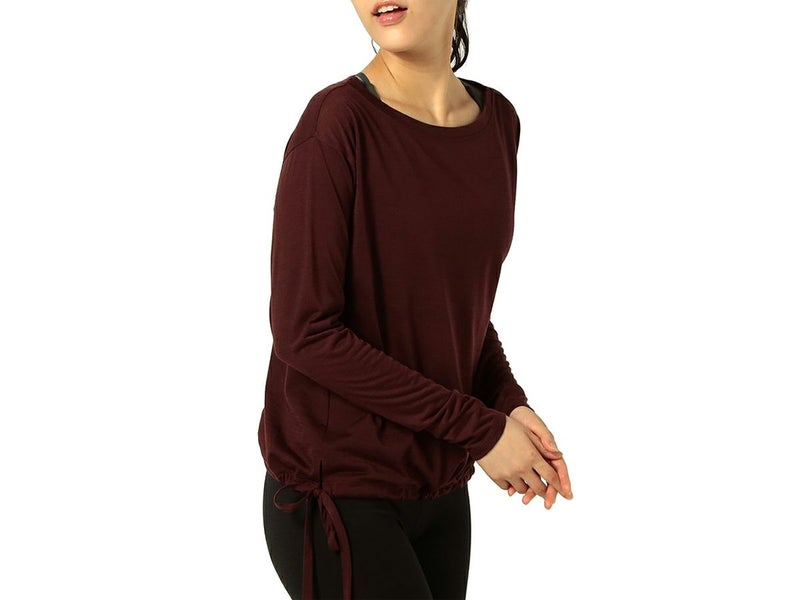 【30%OFF】 スーパーナチュラル sn super.natural エスエヌ DRAWSTRING LONG SLEEVE LS ドローストリング ロングスリーブTシャツ レディース 春 秋 ワインレッド えんじ色 スポーツ フィットネス 長袖 Tシャツ SNWJ10058-JU64 アウトレット セール