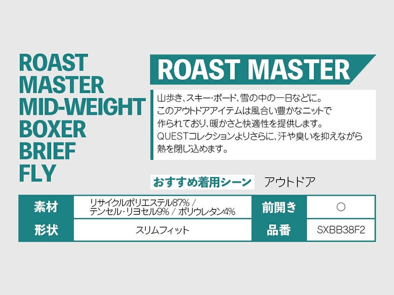 QUESTコレクションより一段階上のミッドウェイト素材は、汗や臭いを抑えながら熱を閉じ込めます。