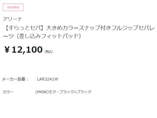 【42%OFF】 アリーナ すらっとセパ 大きめカラースナップ付きフルジップセパレーツ(差し込みフィットパッド) レディース arena アウトレット セール