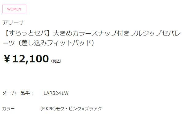 【46%OFF】 アリーナ すらっとセパ 大きめカラースナップ付きフルジップセパレーツ(差し込みフィットパッド) レディース arena アウトレット セール